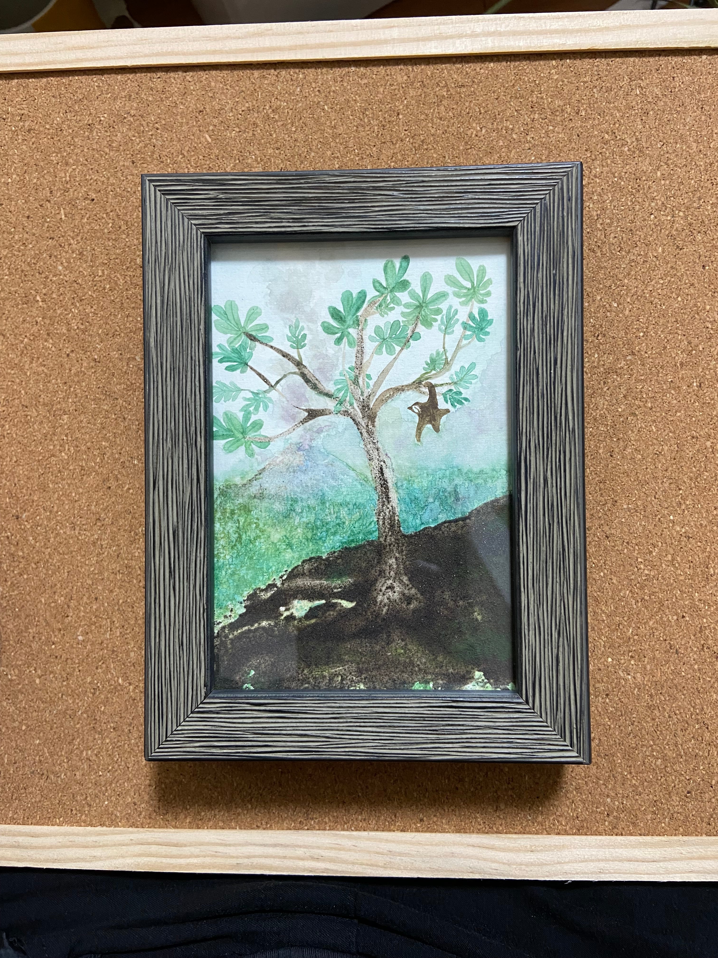 桜島の火山灰の絵の具を使った水彩画です。