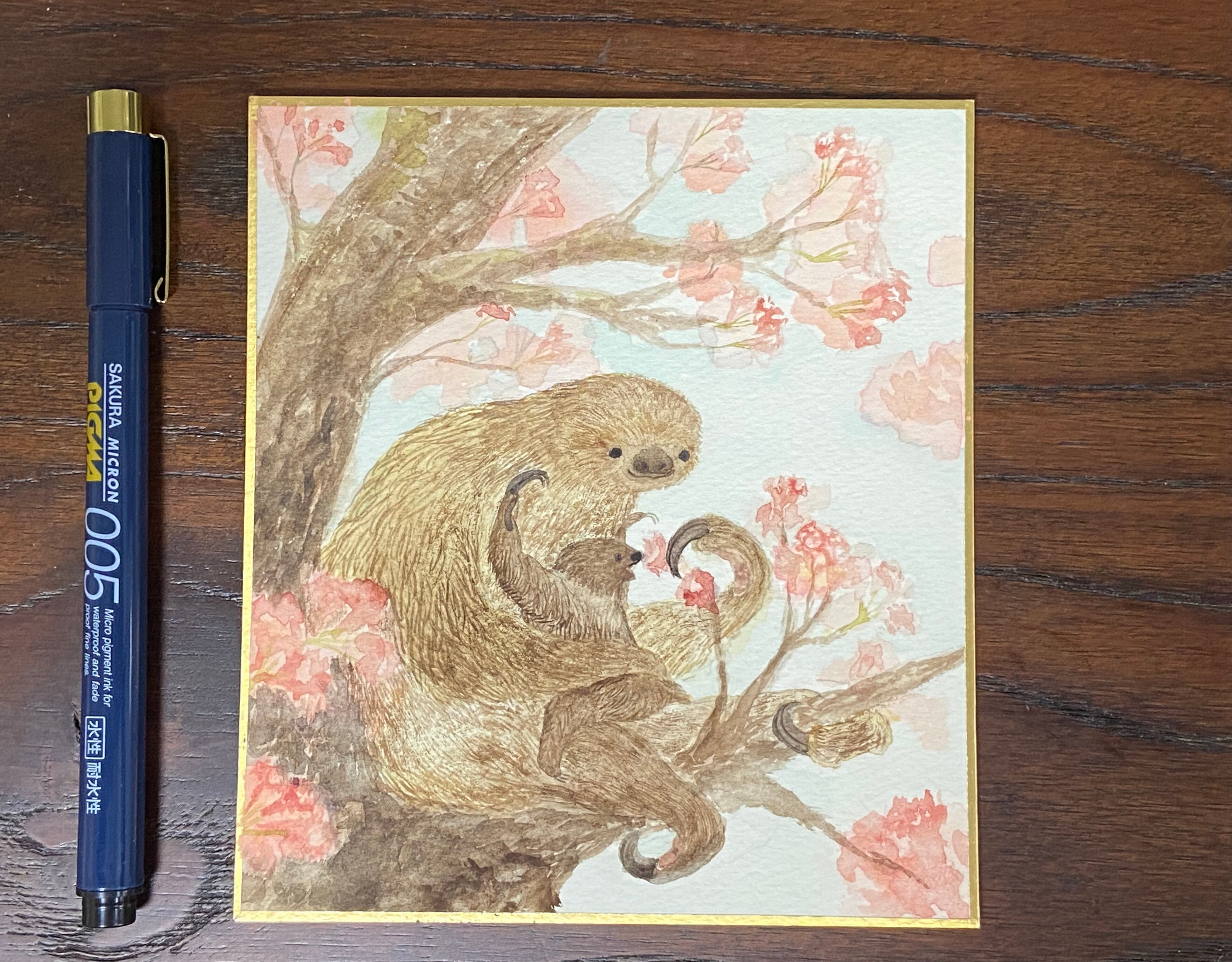 フタユビナマケモノ親子の 水彩原画